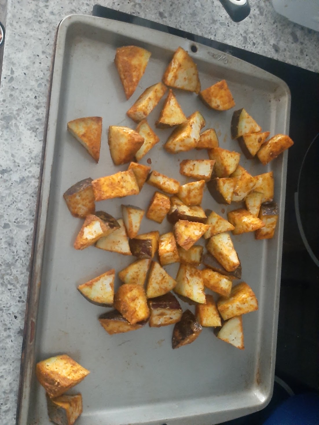 2. In a tray add a generous layer of olive/avocado oil, add in parika, pepper and salt. Mix the green beans in and then put the tray into the oven for 20-25 minutes.