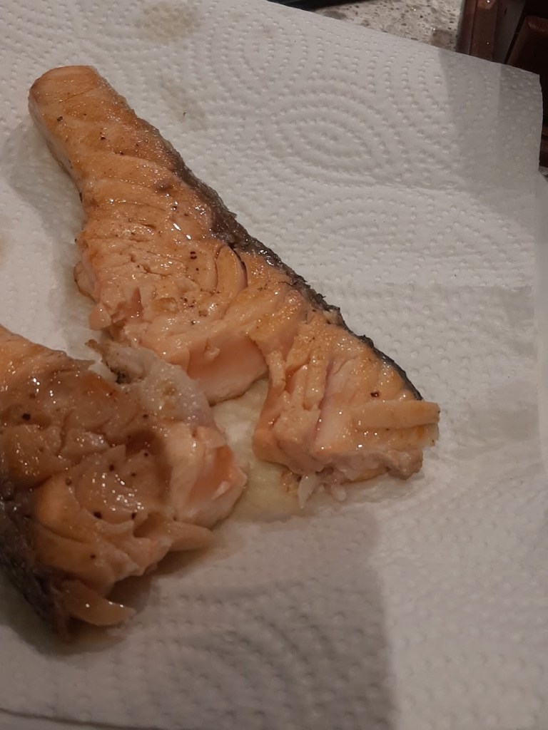 4. Cook the Salmon about 4 minutes each side. Done-ness as illustrated below will do.